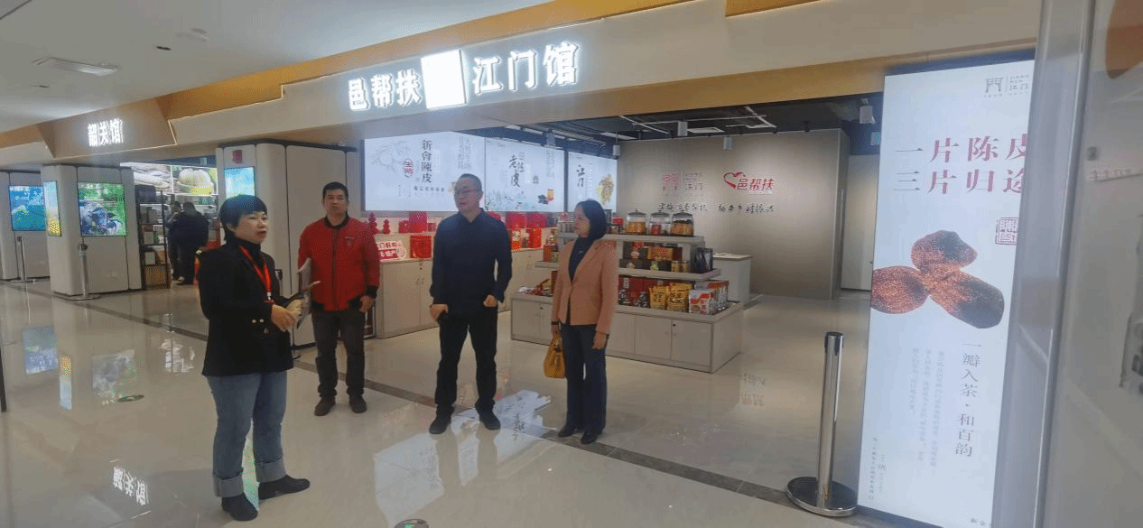 黄江华一行先是走访了中心各地方展馆和短视频直播间,详细了解展馆特色及短视频基地运营规划情况。随后的座谈会上,黄庆赛介绍消费帮扶产品中心,强调其政府使命与公益属性,阐述了学生参与活动的多种途径,如到商家单位就业、传播家乡助农产品等。同时,还探讨了与学校在创新大赛、创业指导及学校设置帮扶展馆等方面的合作设想。邓碧云则对短视频直播基地的筹备情况及未来运营规划进行了说明。黄江华着重介绍了学校创新创业教育情况,涵盖课程建设、师资培训、校内平台搭建及创新大赛等,强调双方应进一步加强校企合作,共同助力“百千万工程”和“双百行动”提质增效。