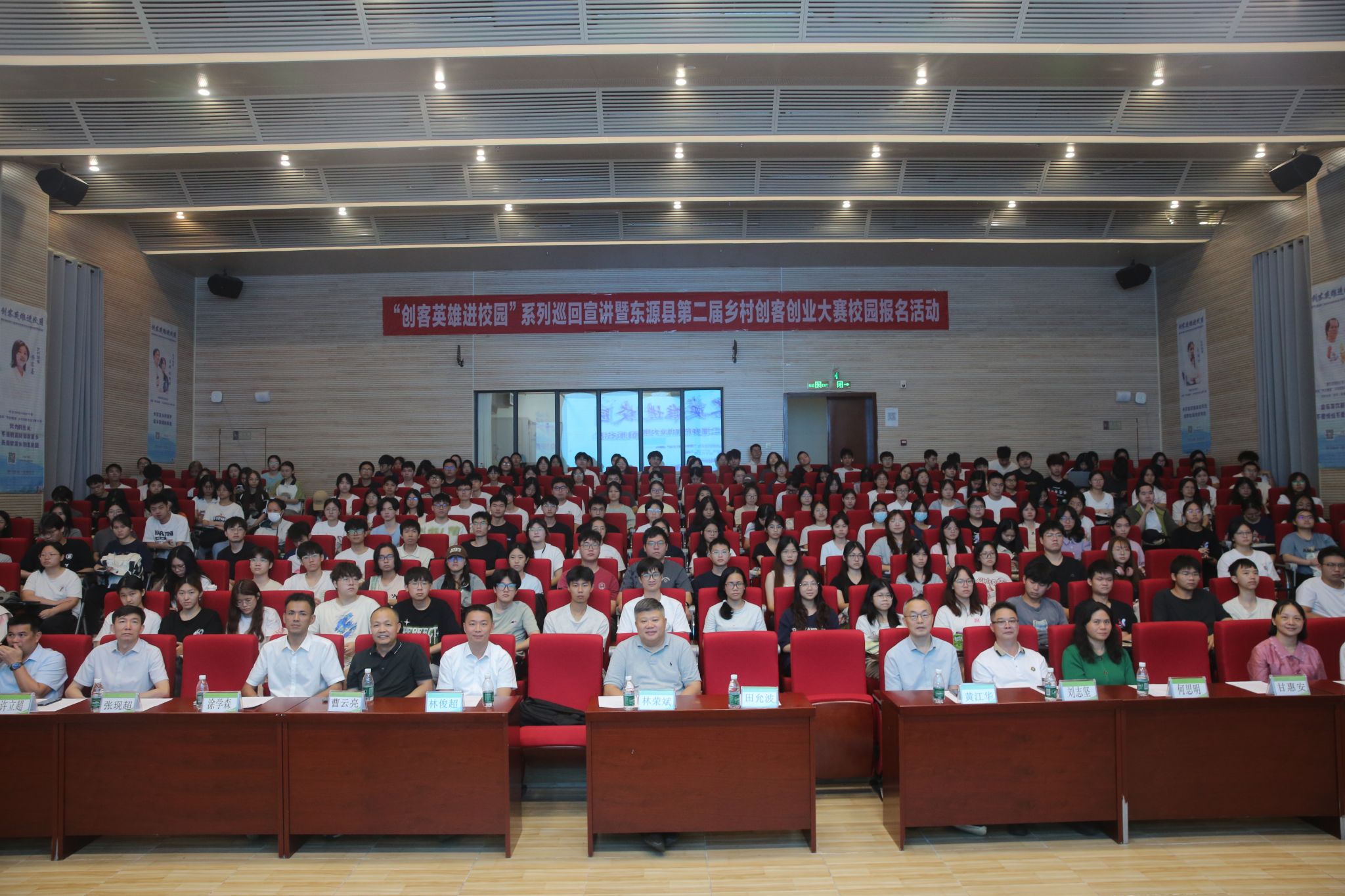6月19日上午,学校“创客英雄进校园”系列巡回宣讲暨东源县第二届乡村创客创业大赛校园报名活动在白云校区德新楼报告厅成功举办。学校党委常委、副校长田允波出席活动。中共东源县委副书记林俊超、河源市县域高质量发展研究会百千万工程研究院院长林荣斌等领导莅临活动现场。学校科学技术部、yl23455永利集团有关领导老师和来自白云校区13个二级学院的264名学生参加了活动。