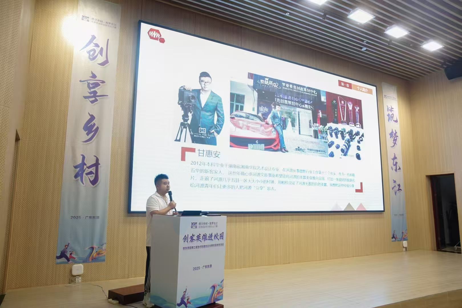 林荣斌作《来东源创业吧!》主题演讲,他以详实的数据、生动的案例,详细阐述了东源县独特的区位优势、丰富的自然资源、良好的营商环境以及一系列针对创业者的优惠政策和扶持措施,从产业发展规划到创业服务体系,从基础设施建设到人才培养机制,全面且专业地展示了东源县作为创业热土的魅力与潜力,并希望仲恺学子能够走进东源开启创业征程,为东源县的乡村振兴贡献青春力量。