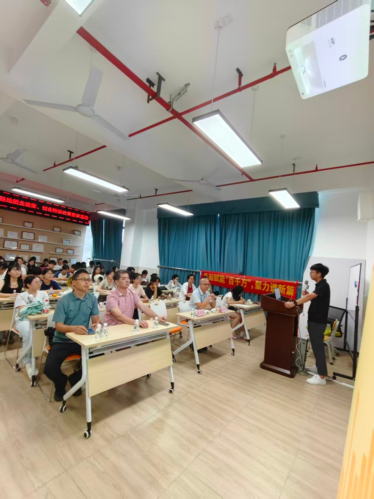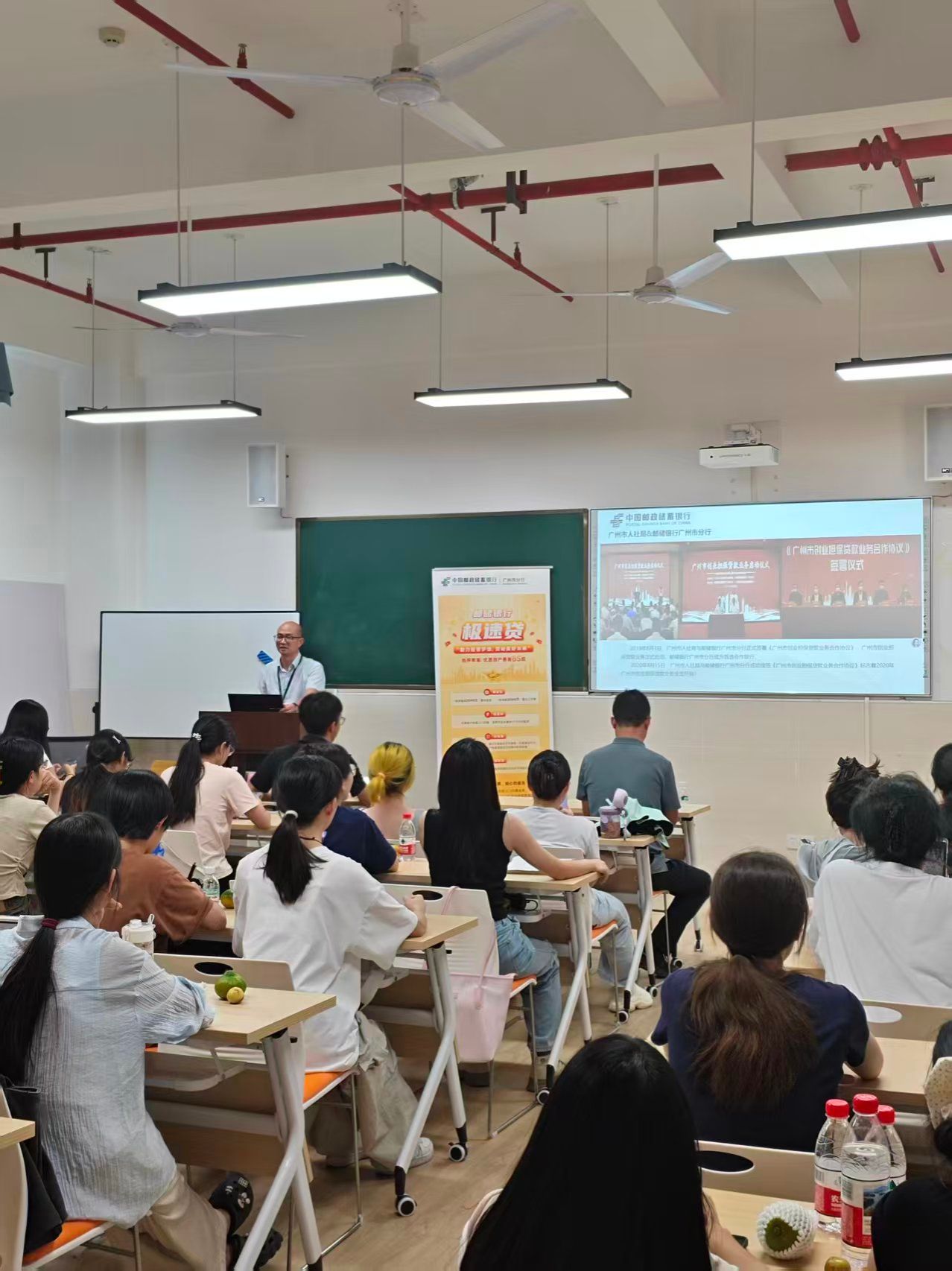 宣讲活动中,白云区人社政策解读专员吴锦才以“广州市就业创业补贴政策”为主题,重点围绕两类核心社保补贴展开详细解读:一是吸纳就业困难人员社会保险补贴,明确补贴对象、申领条件与标准,助力毕业生创业企业减轻用工成本、吸纳重点群体就业;二是大学毕业生初创小微企业社会保险补贴,针对小微企业发展痛点,讲解政策适用范围与申请流程,为小微企业稳岗扩就业提供政策支持。中国邮政储蓄银行白云分部经理谢国梁则聚焦“广州市创业担保贷款政策”,结合大学生实际及邮储银行综合金融服务,从政策与实务双维度进行分享。他不仅系统梳理了大学生创业担保贷款的申请条件、审批流程,还通过真实创业案例具象化政策优势,同时介绍了适配大学生创业的特色贷款产品,为学子创业融资搭建起清晰的“路径图”。