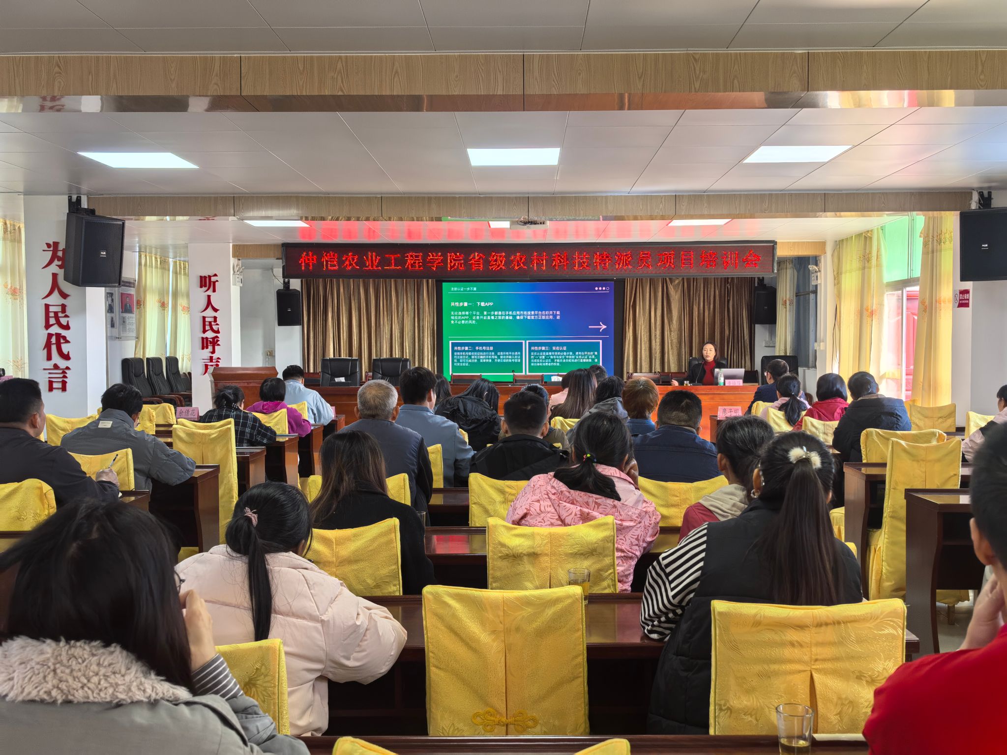 12月17日,一场题为“助农直播实操课:让‘岗坪切粉’走进千家万户”的专题培训在肇庆市怀集县岗坪镇成功举办。本次活动由yl23455永利广东省农村科技特派员团队与驻岗坪镇帮镇扶村工作队联合主办。广州市蛋壳网络科技有限公司总监黄焕萍担任主讲嘉宾。我校广东省农村科技特派员陆美莲、余倩花,创新创业教育校外导师、广州凤凰财税服务有限公司总经理龚钊,以及佛山市驻肇庆市工作组岗坪镇工作队队员廖子明、贺王翔等出席活动。镇村干部、电商带头人及种植大户等40余人参加了培训。