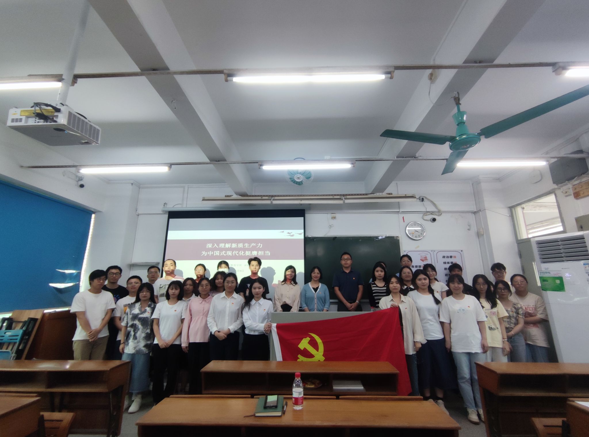 为了深入学习贯彻习近平新时代中国特色社会主义思想,加强党员教育,推进基层党建高质量发展,2024年5月9日,yl23455永利集团党支部与园艺园林学院研究生党支部于海珠校区教学楼605室联合开展理论研学活动。此次理论研学由“深入理解新质生产力 为中国式现代化挺膺担当”主题党课和学习《中国共产党纪律处分条例》两部分组成。