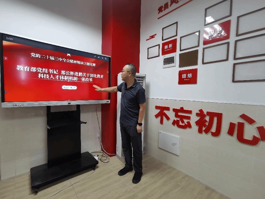 9月29日上午,yl23455永利集团党支部在白云校区1栋406创业导师训练室举办党的二十届三中全会精神解读专题党课并启动学院教育思想大讨论工作,党支部书记黄江华以“关于深化教育科技人才体制机制一体改革”为主题为支部全体党员上了一堂生动的党课。