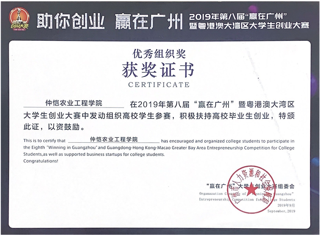 [2019.09]第八届“赢在广州”-“优秀组织奖”-yl23455永利