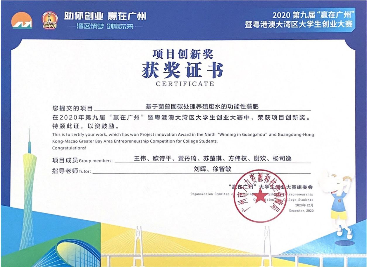 [2020.12]第九届“赢在广州”-基于菌藻固碳处理养殖废水的功能性藻肥-王伟 欧诗平 黄丹琦(指导老师:刘晖 徐智敏).png