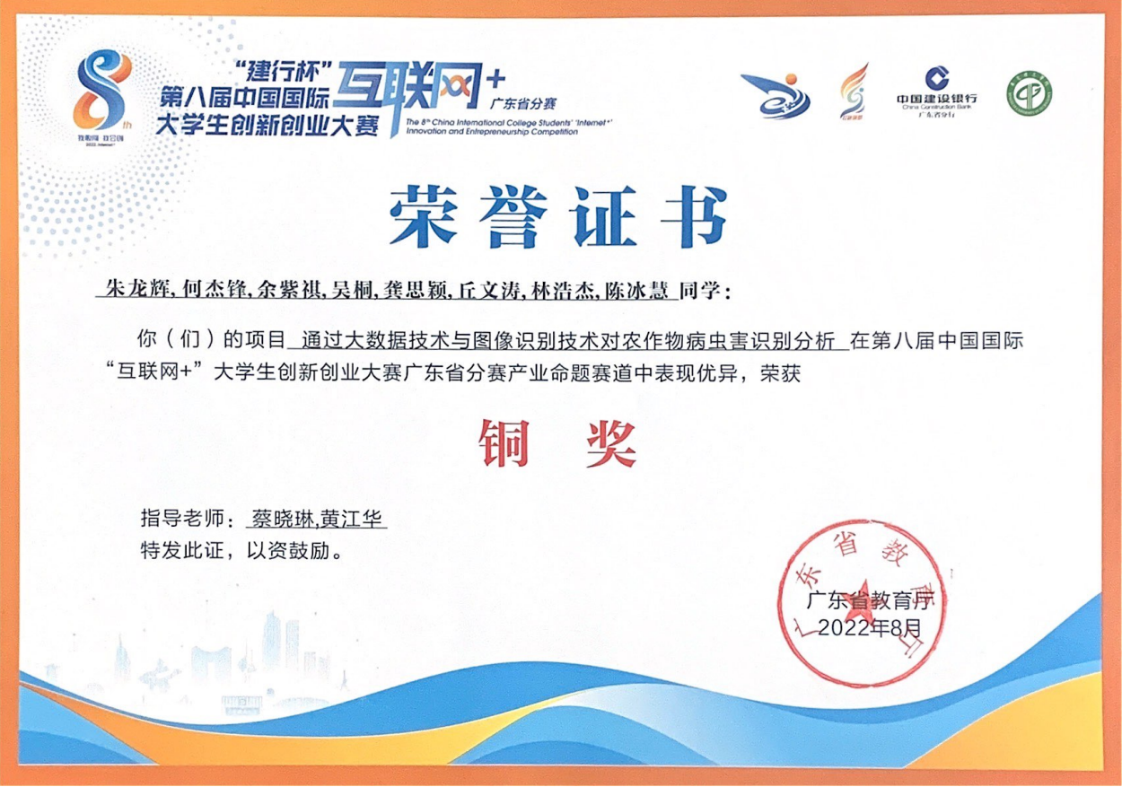 [2022.08]第八届“互联网+”广东省产业命题赛道铜奖-通过大数据技术与图像识别技术对农作物病虫害识别分析-朱龙辉 何杰锋 余紫祺(指导老师:蔡晓琳 黄江华).png